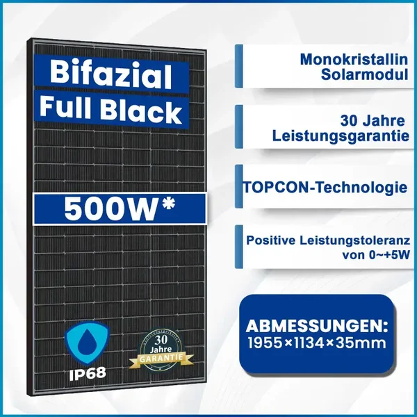 2x500W Bifazial Glas-Glas Full Black PV Modul (SH-500W-BF)